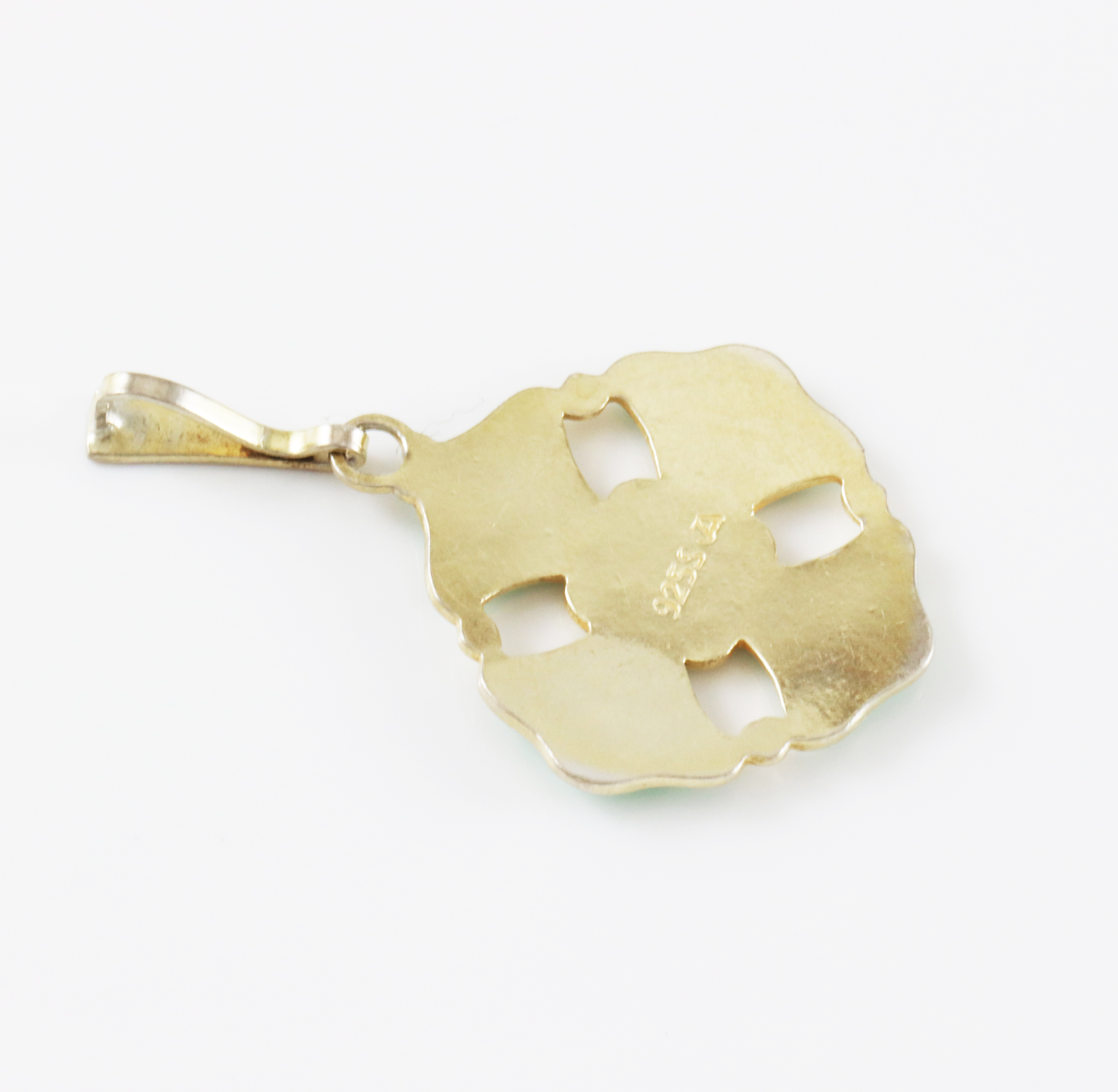Anheng i forgylt sølv og emalje. Produsert av Jensen & Aamodt, finnes i mange forskjellige farger.