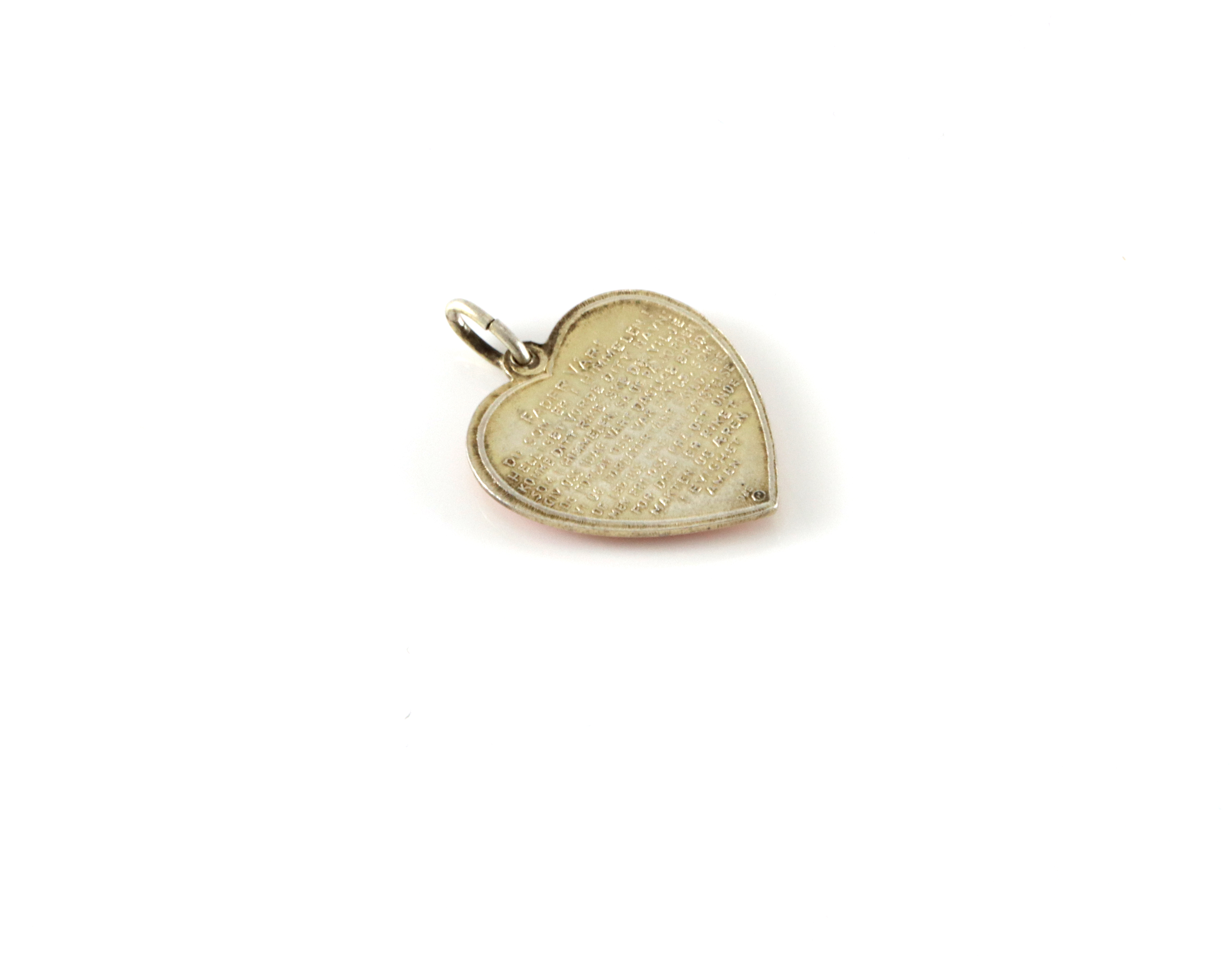Anheng i forgylt sølv med rosa emalje. Produsert av Ivar T Holth Fader vår på baksiden 2,4 x 1,7 cm