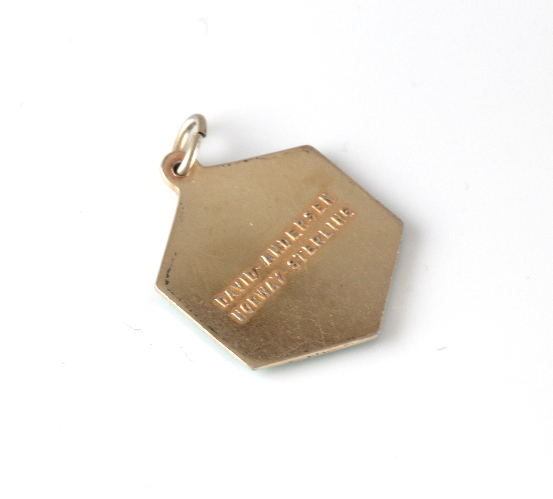 Stjernettegnet krepsen, emaljert anheng produsert av David-Andersen. 2 x 2,4 cm Arkivbilde, disse anhengene har vært produsert i flere tiår, derfor kan feks fargenyanser avvike noe.