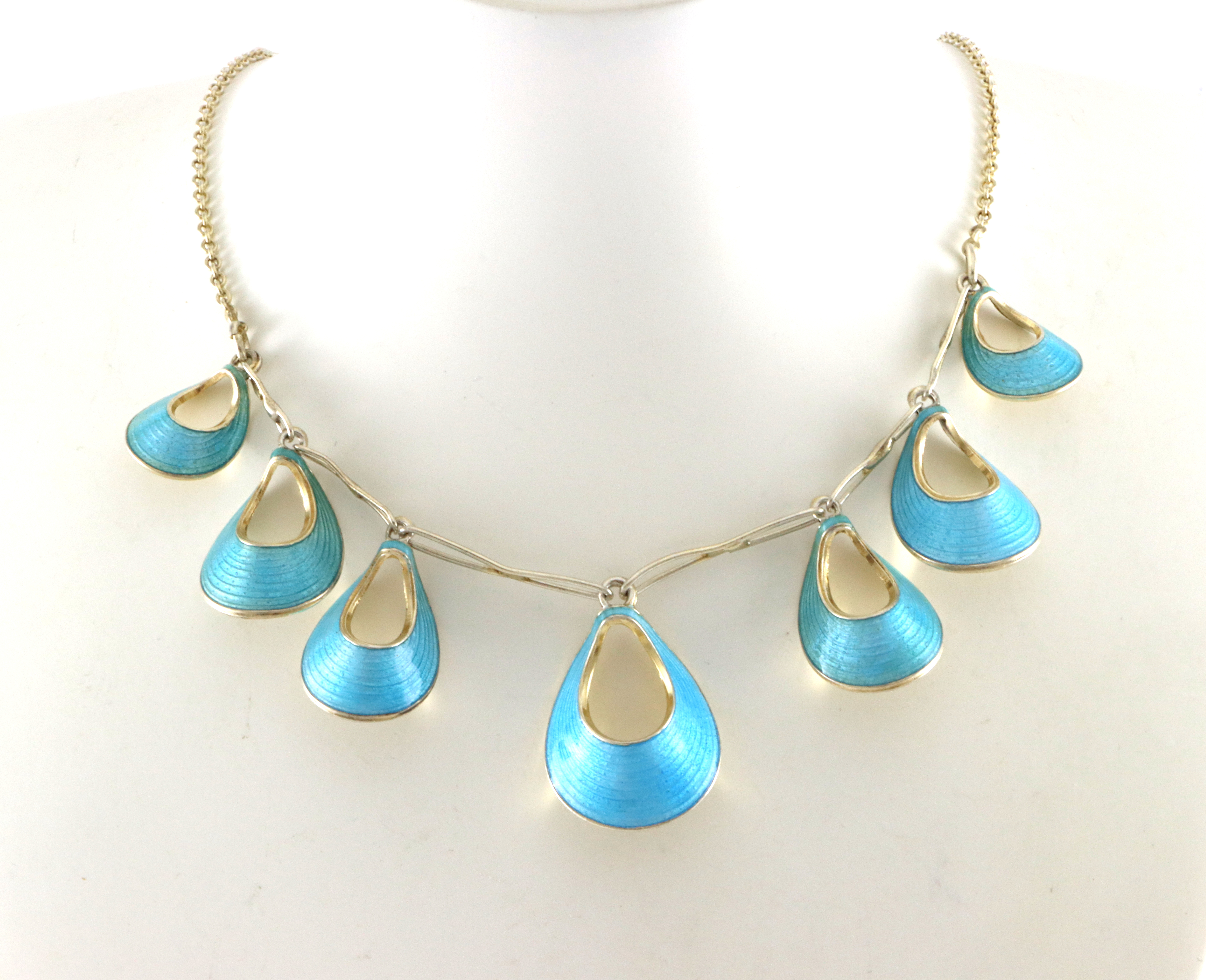 Smykkesett bestående av collier og øredobber med skruing Bredde collier: 23 mm Lengde collier: 42 cm Str øredobber: 30 x 26 mm Noe fargeforskjell mellom emaljen på collieret og øredobbene