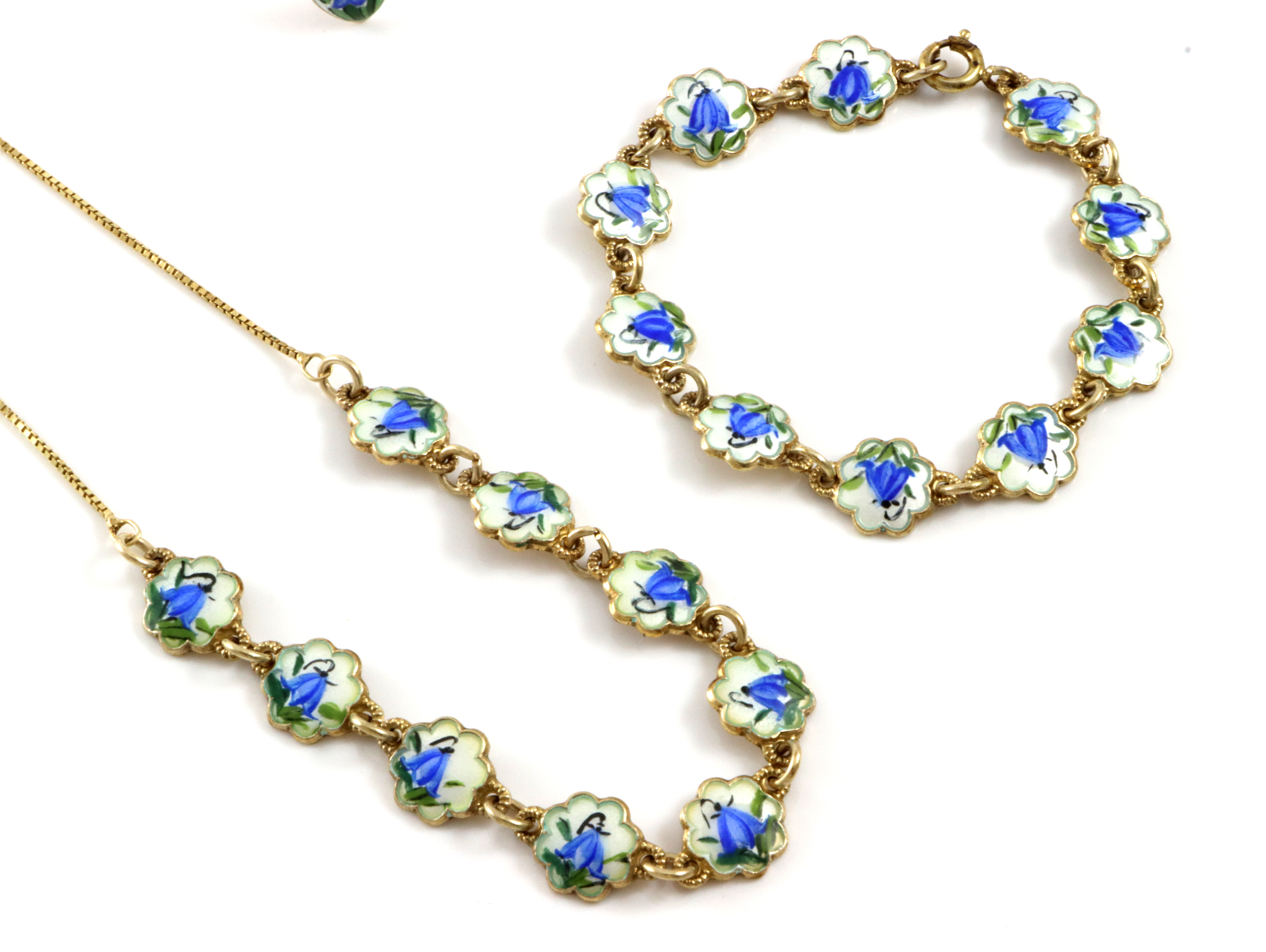 Smykkesett for barn med en ring som har en annen fasong og er fra Kjell Eftedal. Collier og armbånd fra Arne Nordlie Lengde collier: 34 cm Lengde armbånd: 15 cm Bredde: 9 mm Str ring: 48 (Justerbar) I god stand