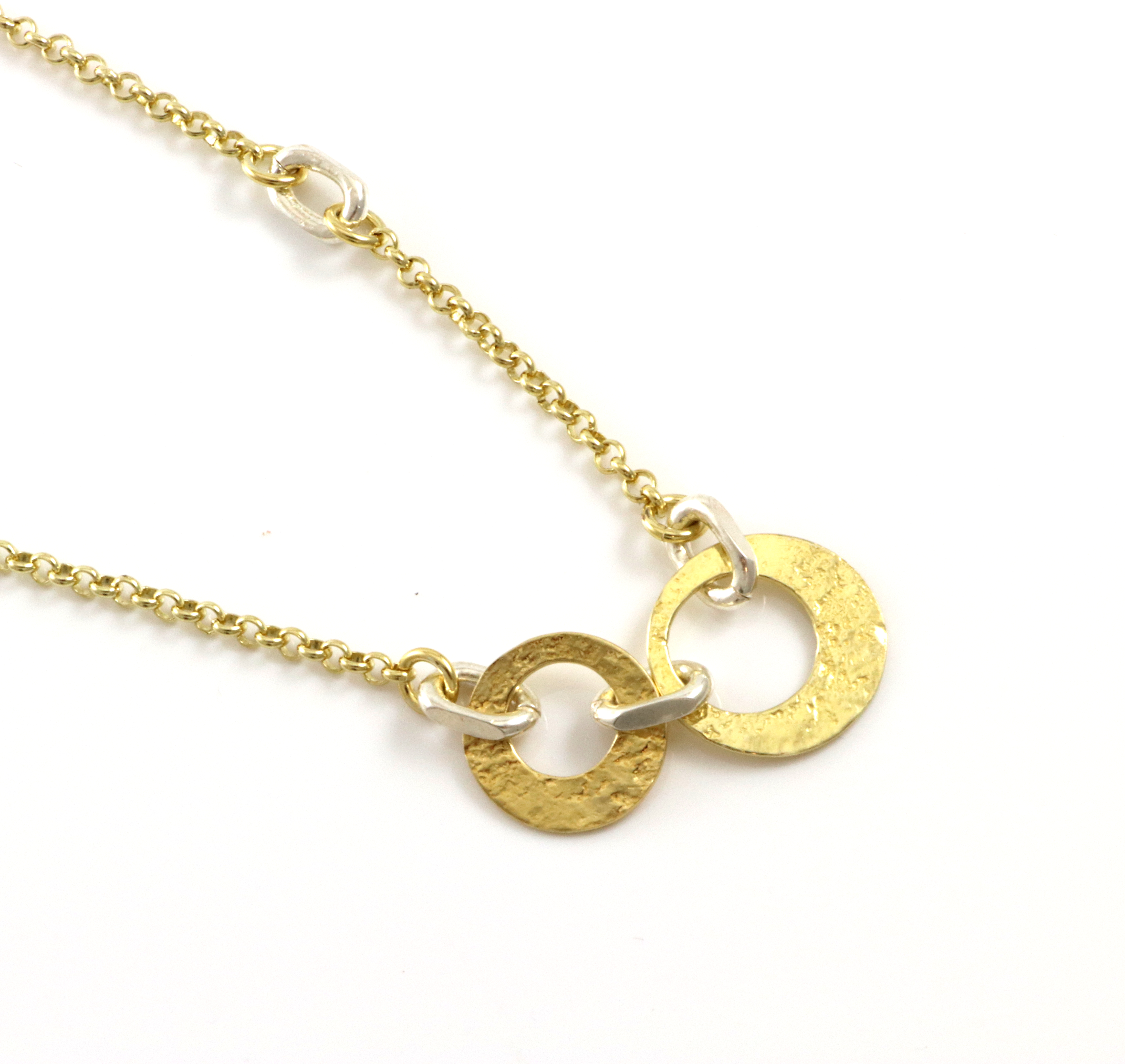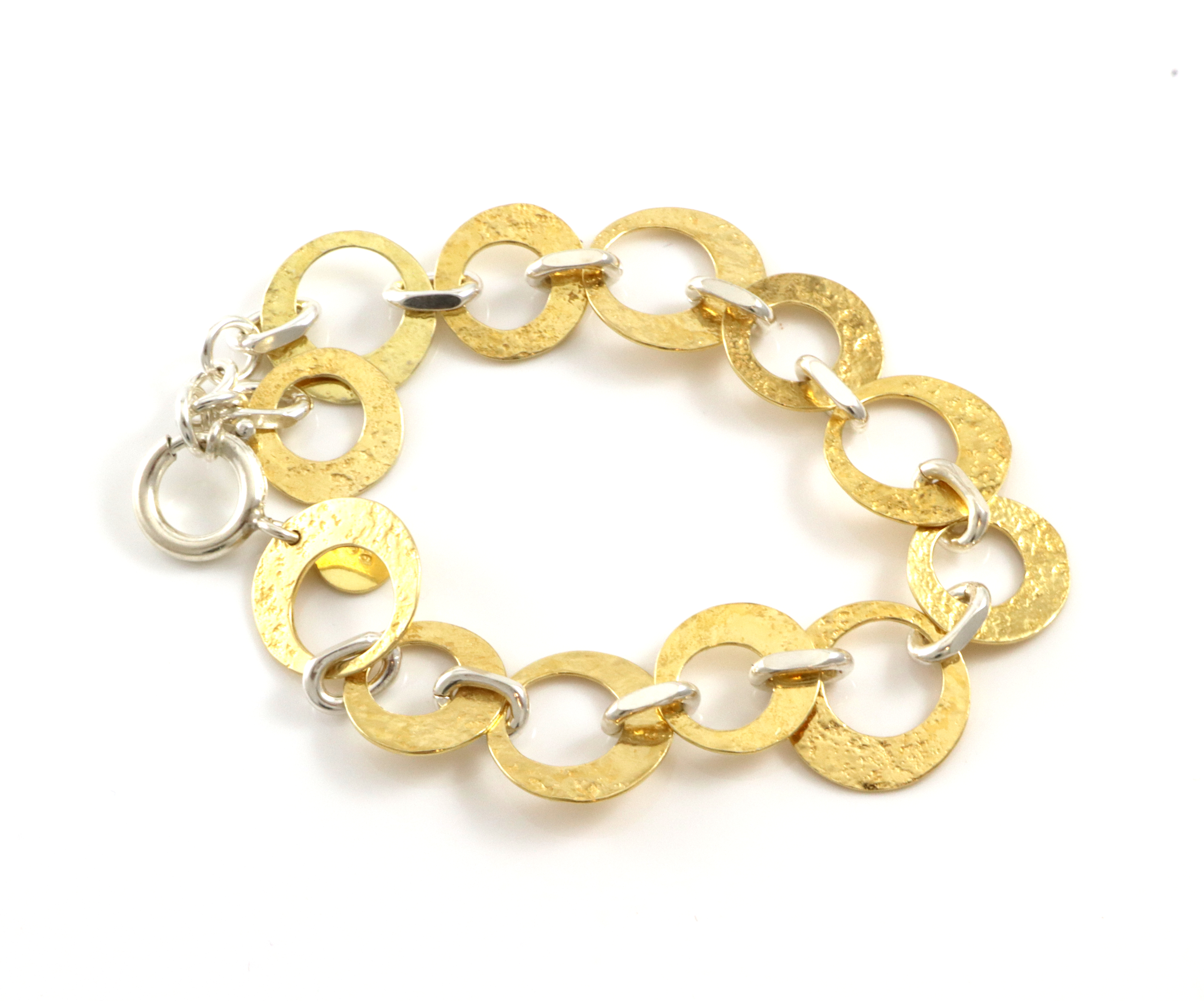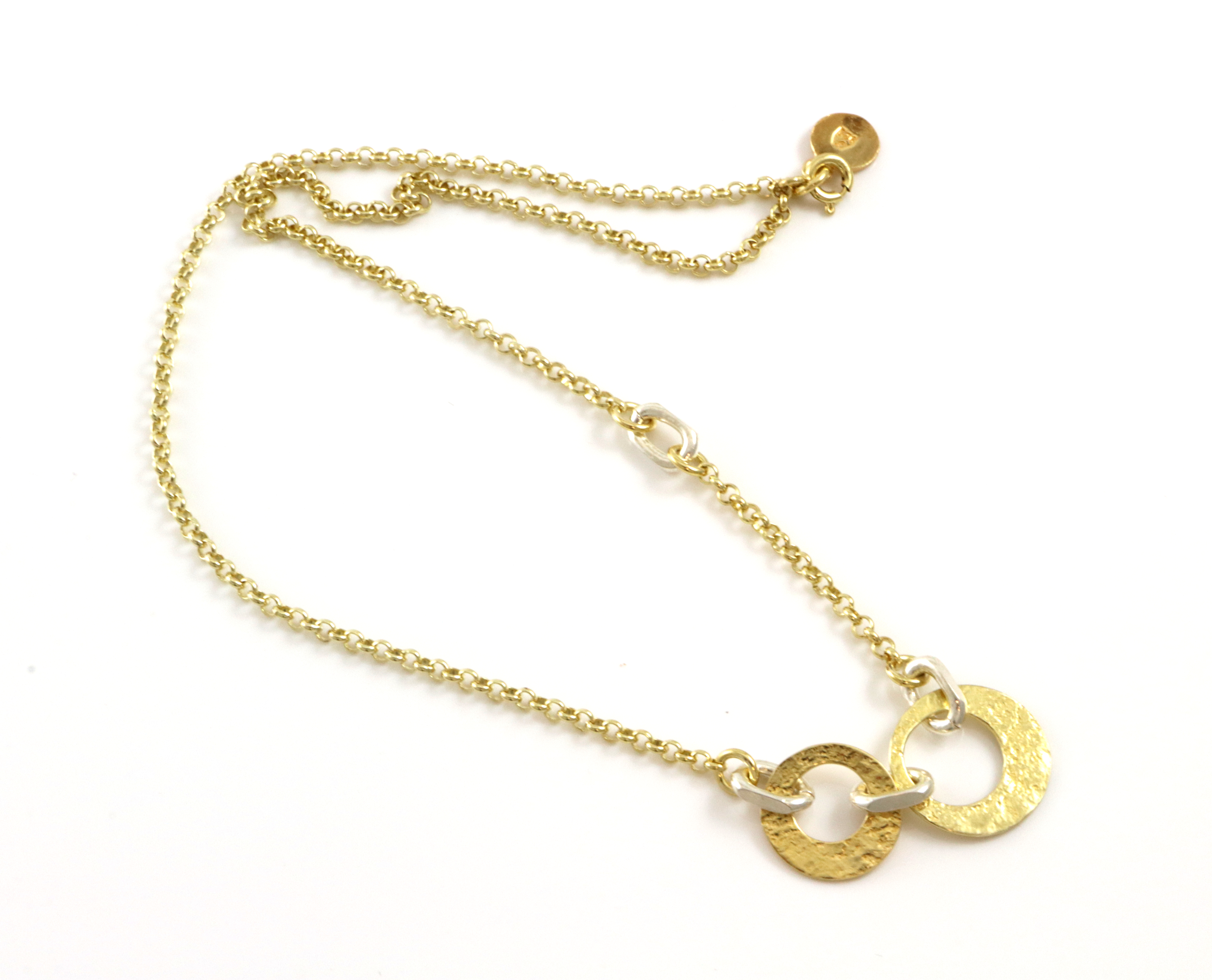 Smykkesett, Spor, bestående av armlenke og halssmykke Bredde armlenke: 16 mm Lengde: 18-20 cm Lengde halslenke: 41 cm Pent brukt