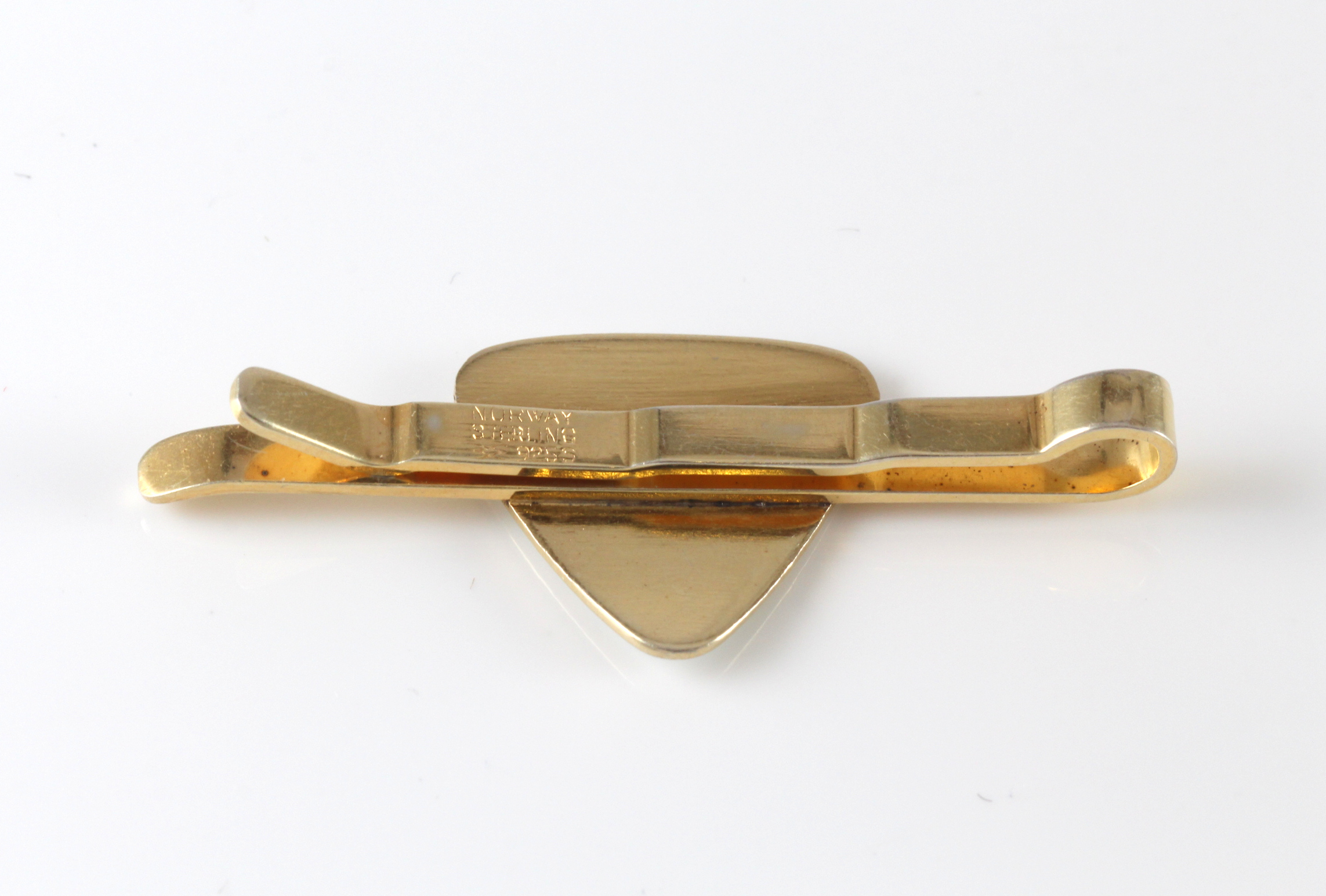Slipsnål i hvit emalje, forgyldt sølv. Produsert av Aksel Holmsen.