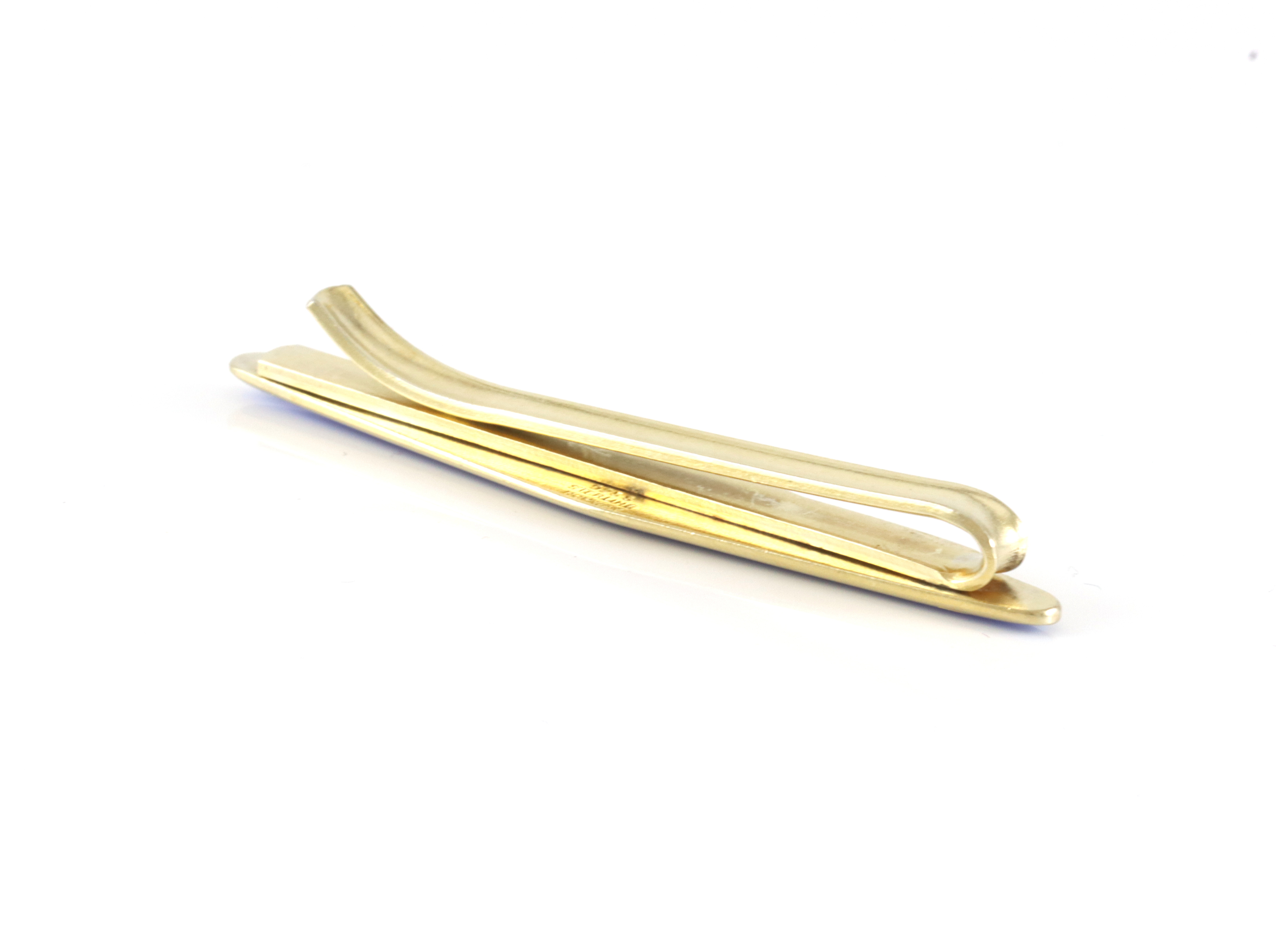 Slipsnål i blå emalje, forgyldt sølv. 5,5 cm lang. Produsert av David-Andersen. Designet av Willy Winnæss.