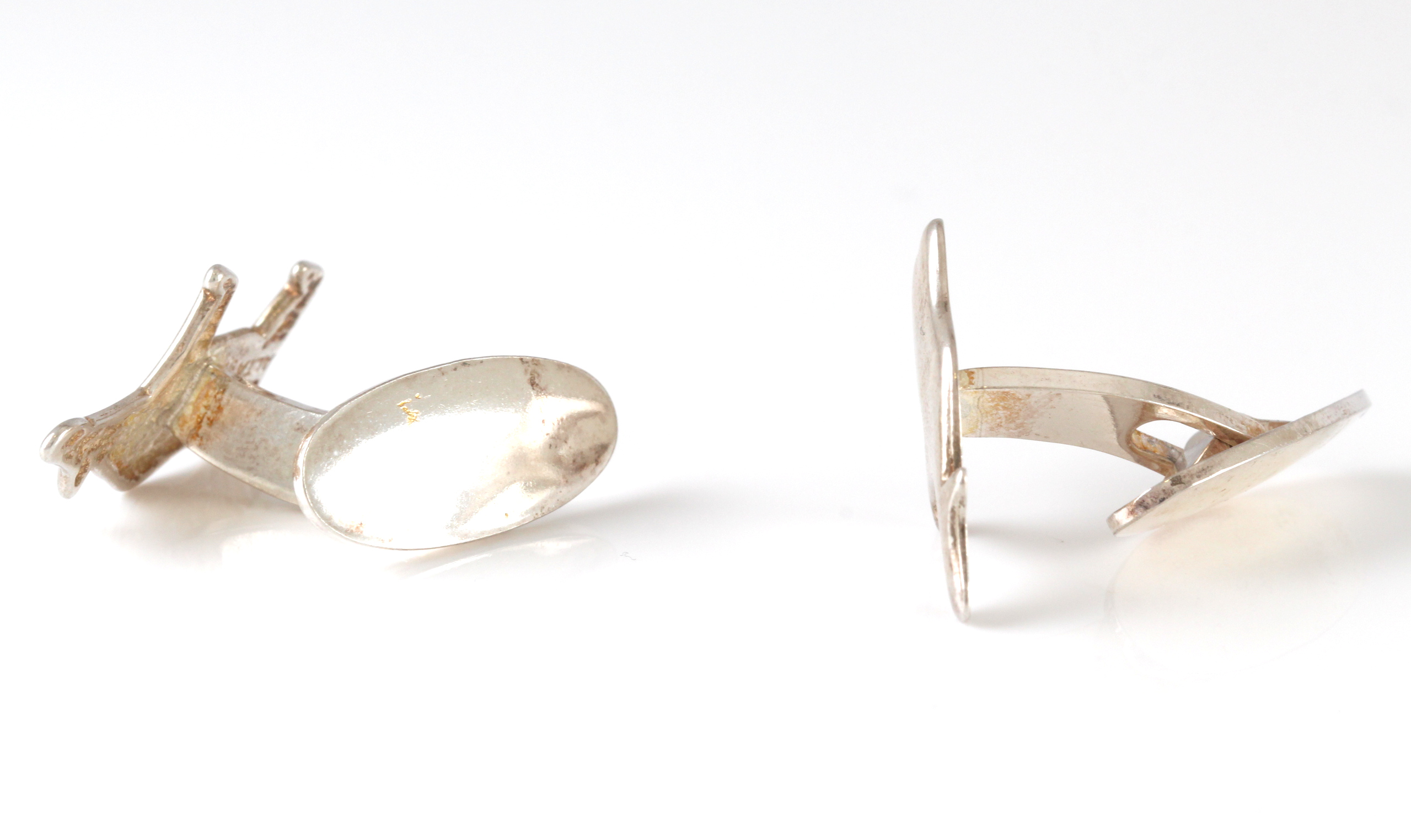 Mansjettknapper vi antar har hentet inspirasjon fra gamle helleristninger etc Dyret er trolig elg.