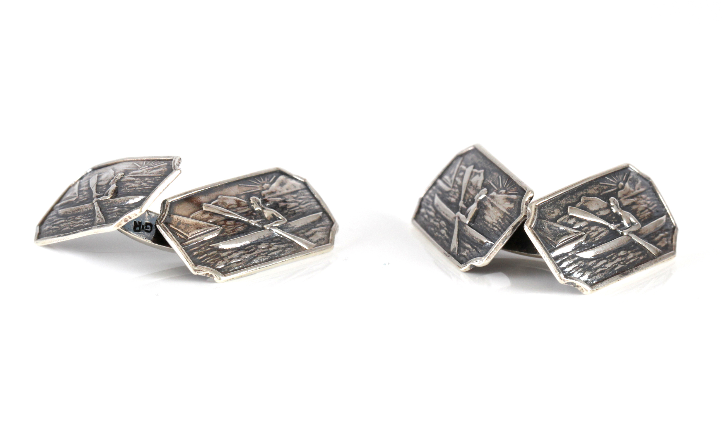 Mansjettknapper med motiv av padler, produsert av Georg Ruud. Noe skjev stang (Ganske vanlig)