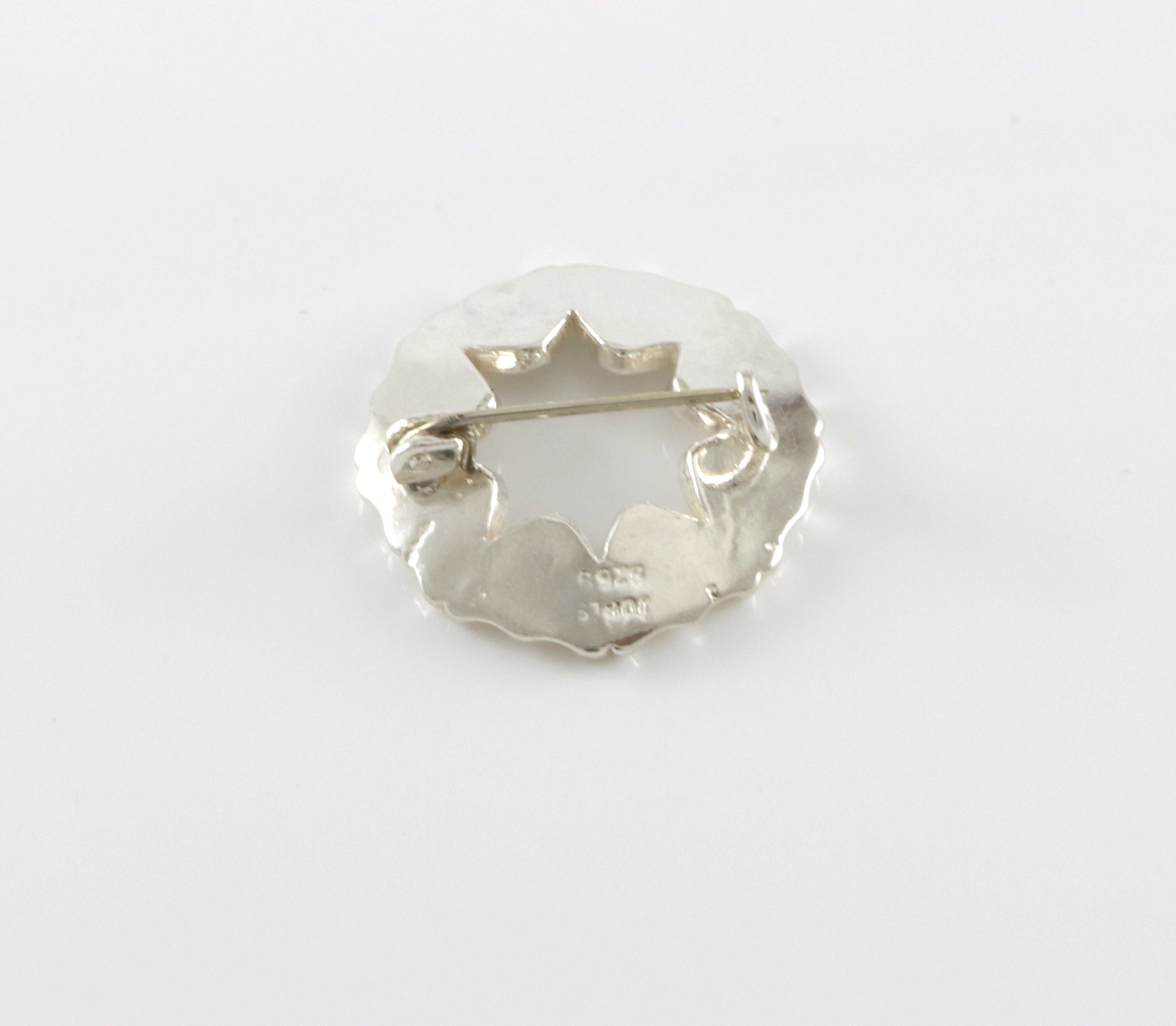 Brosje i sølv Produsert av Juhls Fra deres historiskeserie Trolig ikke lenger i produksjon 2,7 x 2,7 cm Arkivbilde