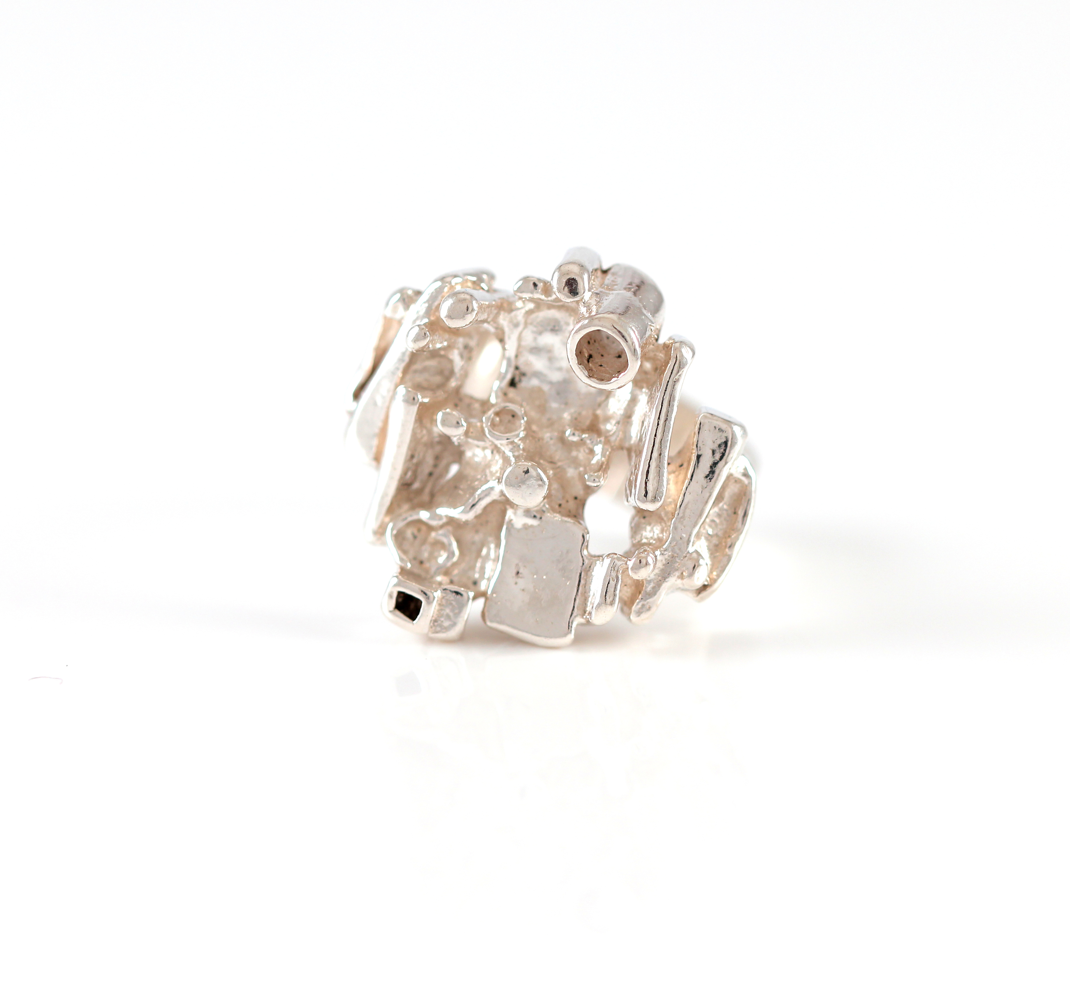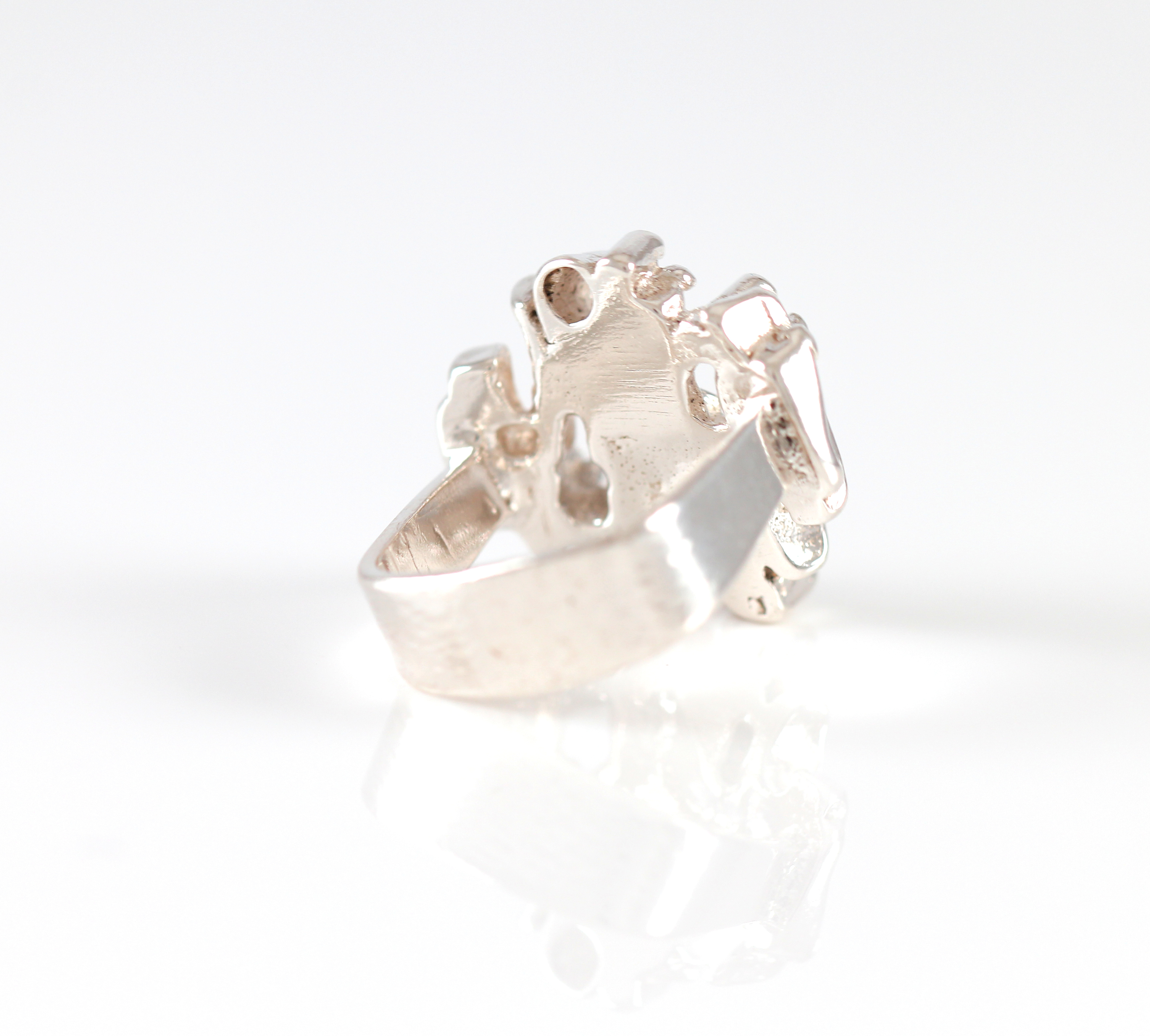Ringen har trolig rundt ringstørrelse 49, vanskelig å måle da skinnen er firkantet.
