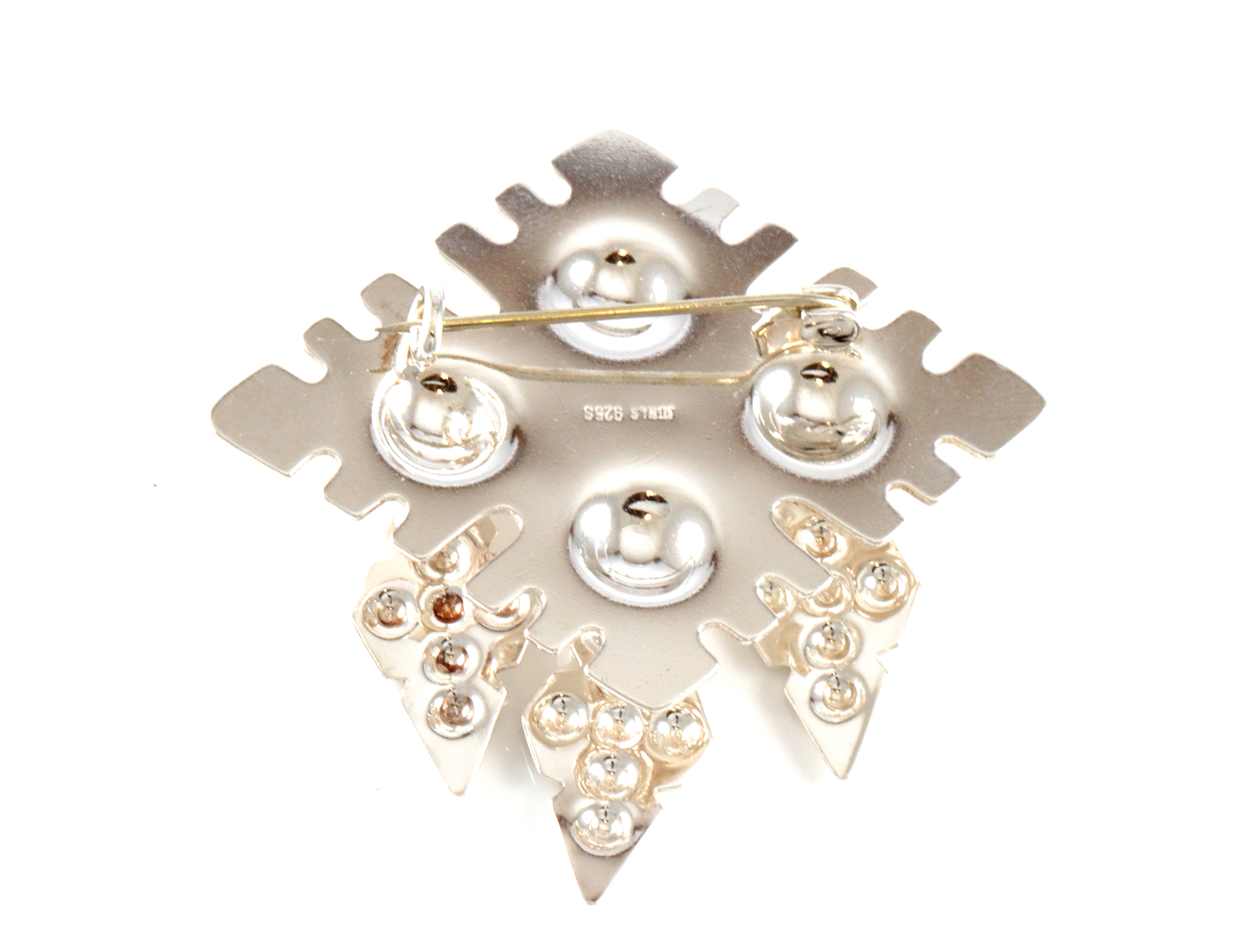 Uvanlig brosje i sølv. Slik vi har forstått det formet som et reinmerke. Trolig ikke i produksjon lengre. 5,2 x 4,1 cm
