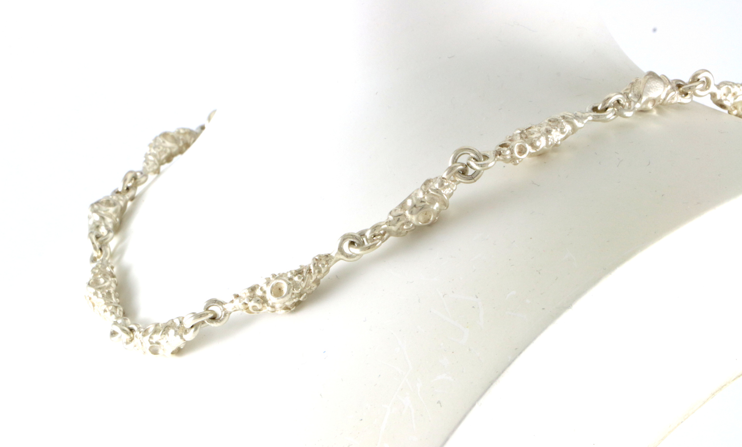 Halskjede i sølv fra Juhls. Tundra-serien modellnummer 667. Dette er uvanlig langt, vi har målt det til hele 62 cm. Det lengste du kan bestille på nett hos Juhls i dag er 49,5 cm. Den har også karabinkrok som lås i stedet for staven de bruker til vanlig. Mistenker at det muligens er satt sammen av en armlenke og en halslenke. Men alt er gjort riktig, så det ser orginalt ut. Ustemplet. Nypris for en vanlig halslenke på 49,5 cm er 4725,- (Aug 2024)
