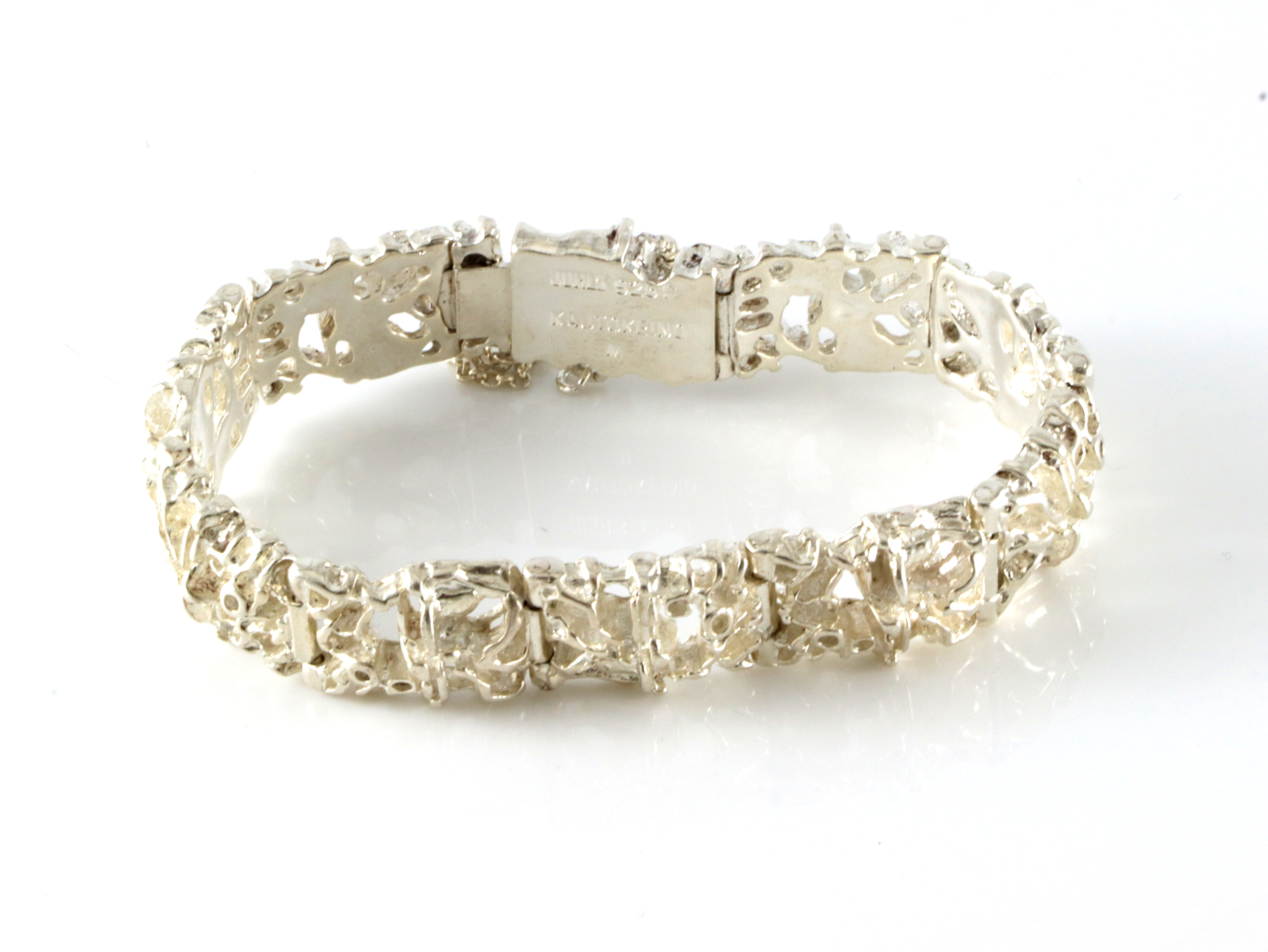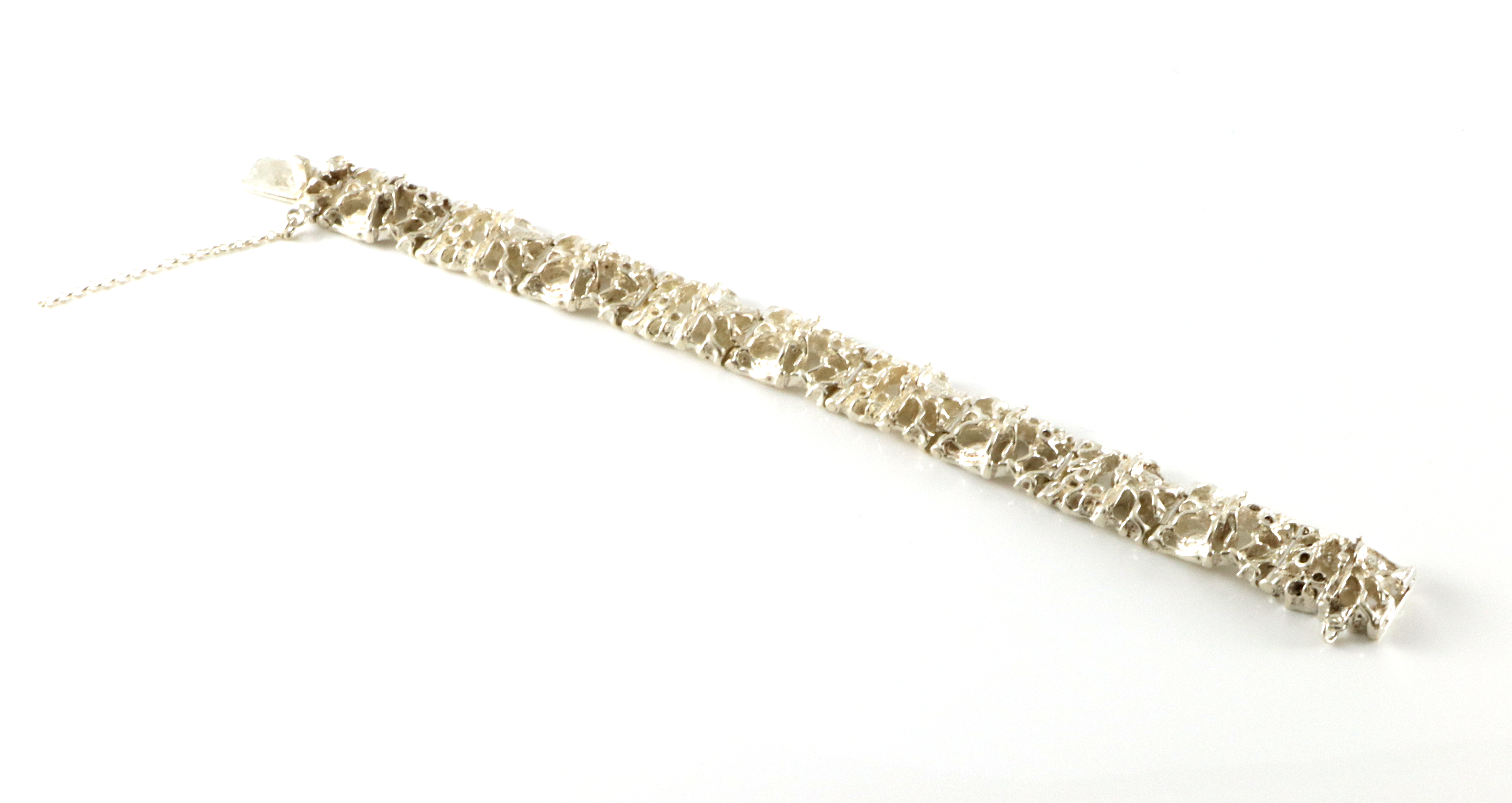 Armlenke i sølv, fra Tundra-serien til Juhls. Modellnummer 754. 18,5 cm lang uten låsetapp, 1,5 cm bred. Nypris 9120,- (Nov.24) Sikerhetslenke som har røket