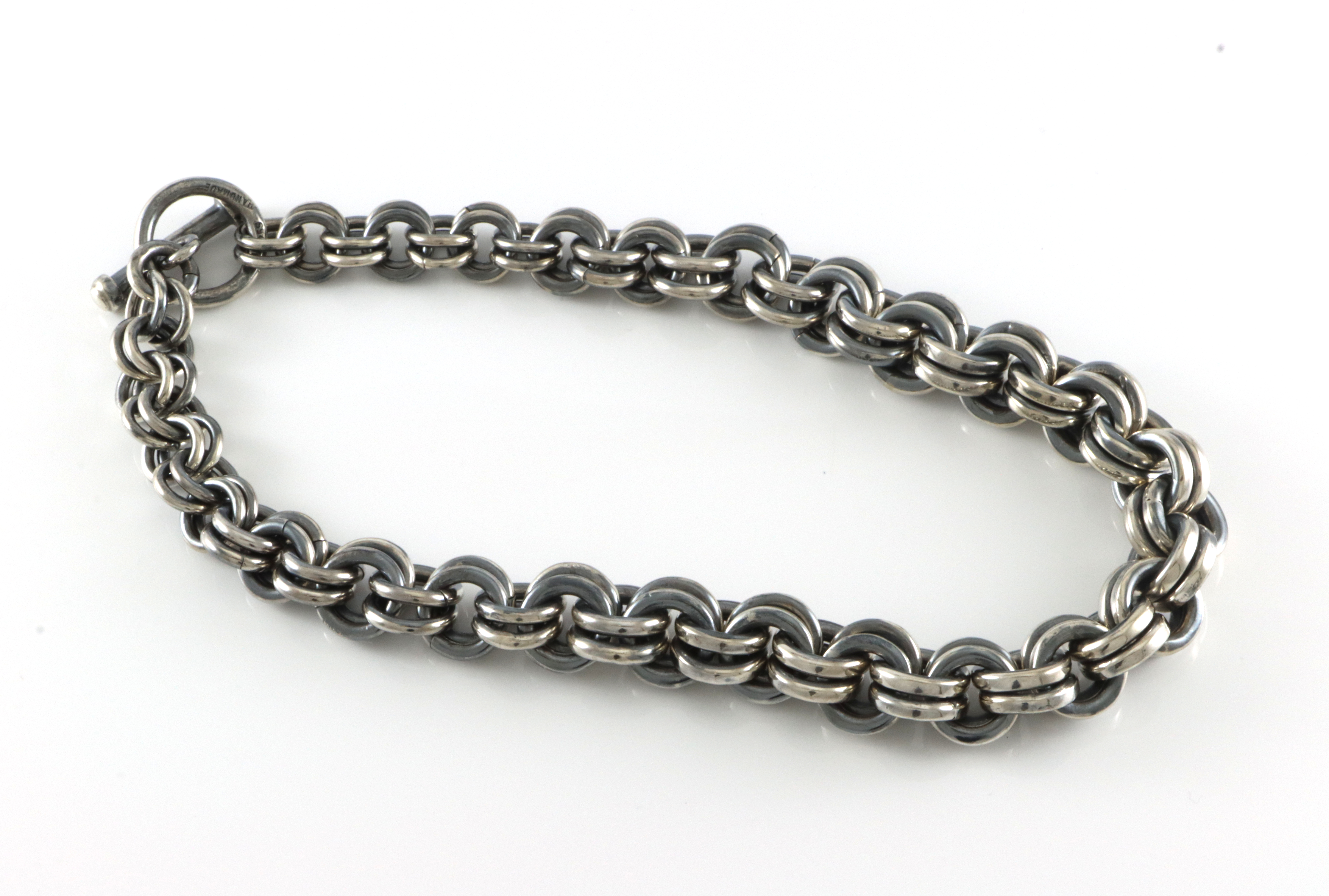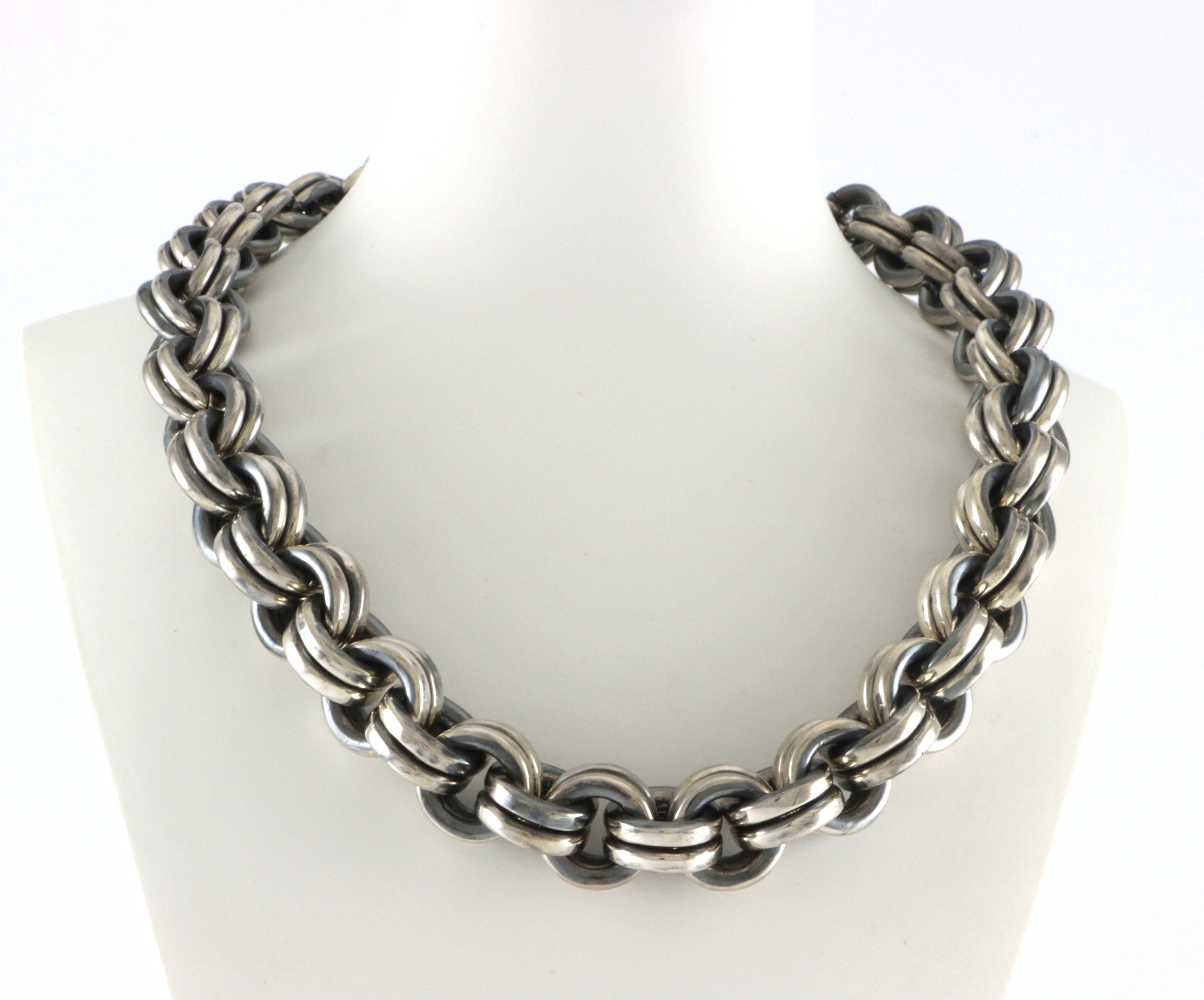 Marianne Berg, eget verksted Bredde:13 mm Lengde: 40 cm Vekt: 190 gram Bidsellås Designer: Marianne Berg Stemplet "Handmade"