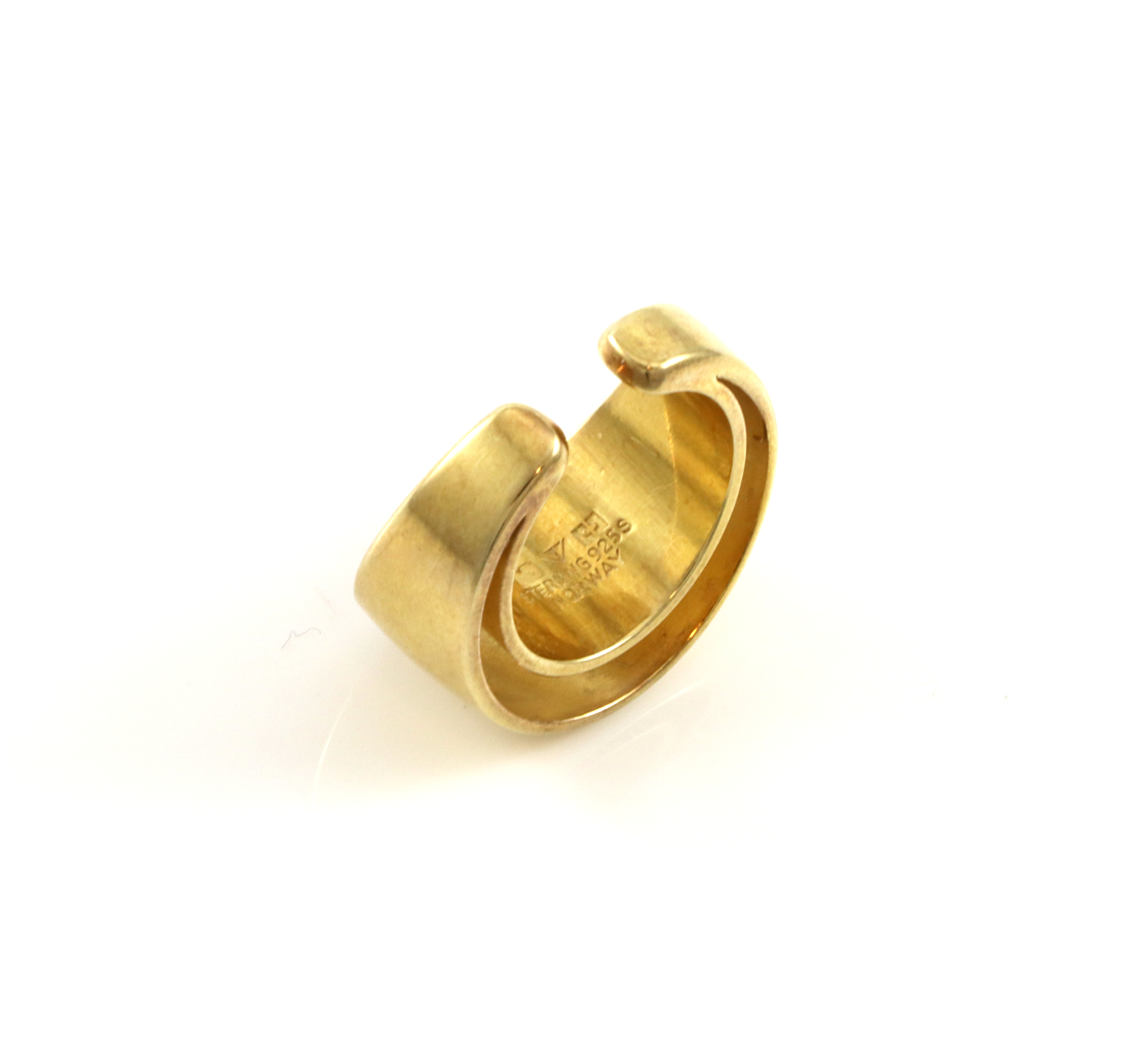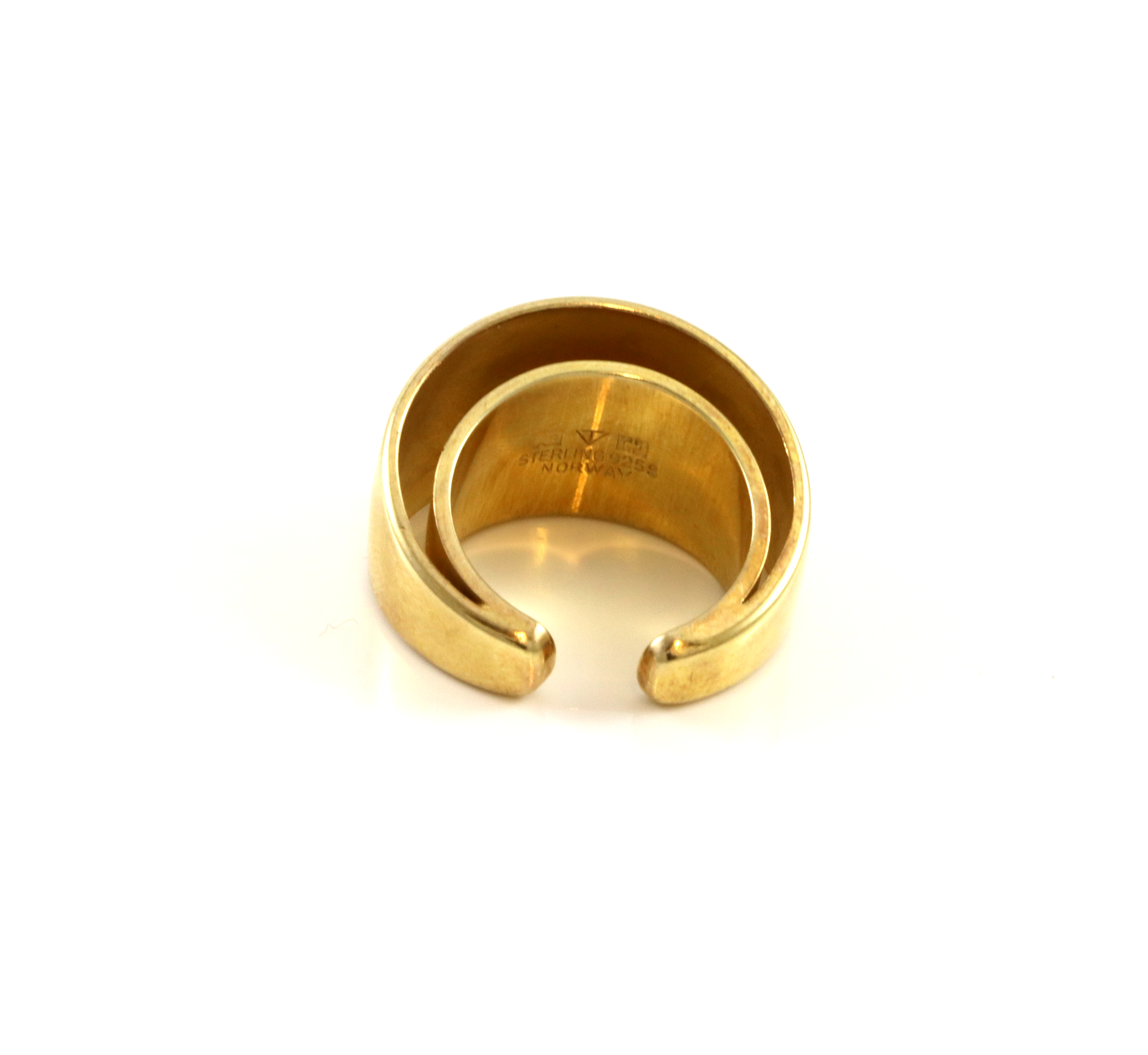 Bredde: 14 mm Ringstr: 53 Designer: Tone Vigeland Svært pent brukt med flott forgylling