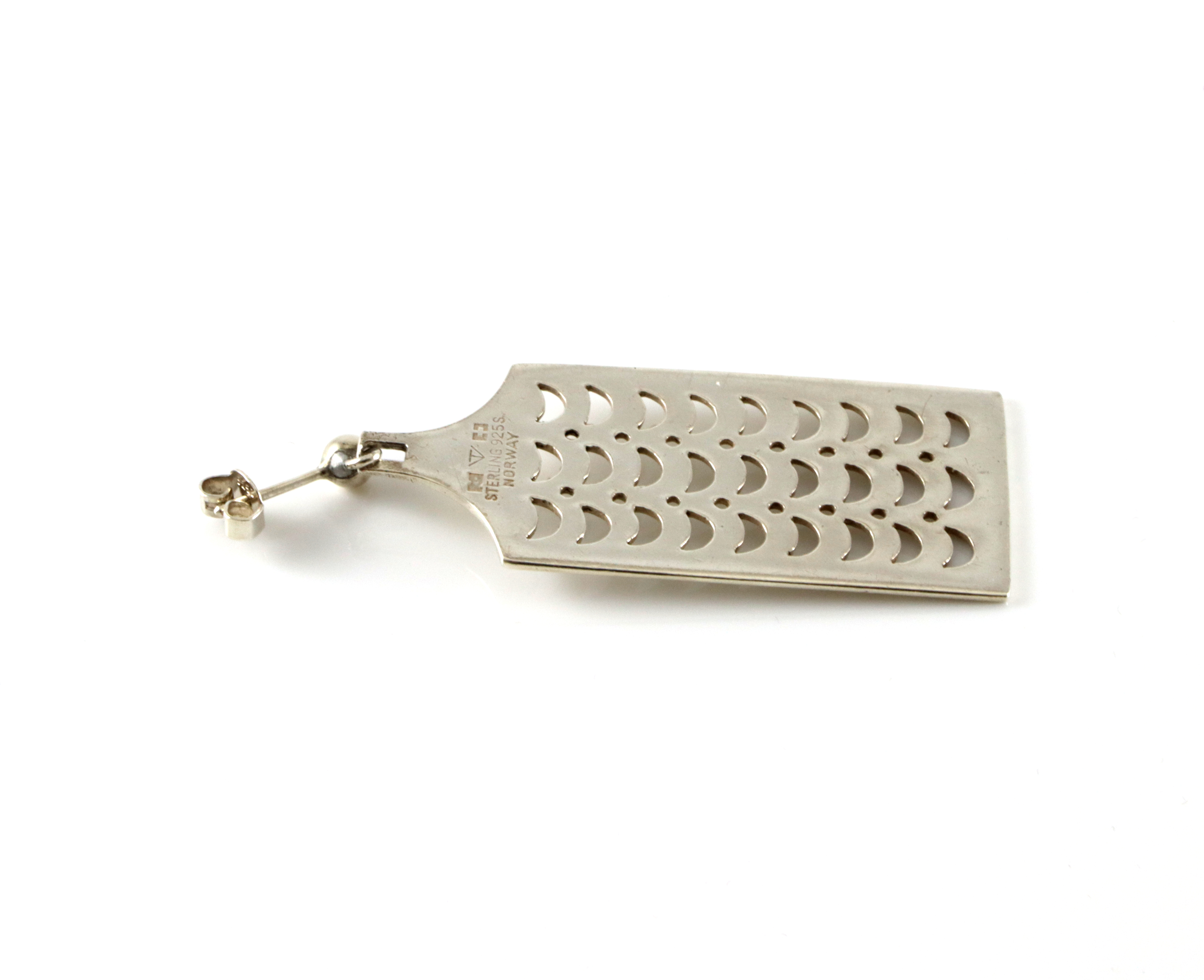 Meget sjeldent singel ørepynt fra Tone Vigeland sin OP-serie. Ikke ofte å se, kan eventuelt gjøres om til anheng. 5,3 x 2,1 cm