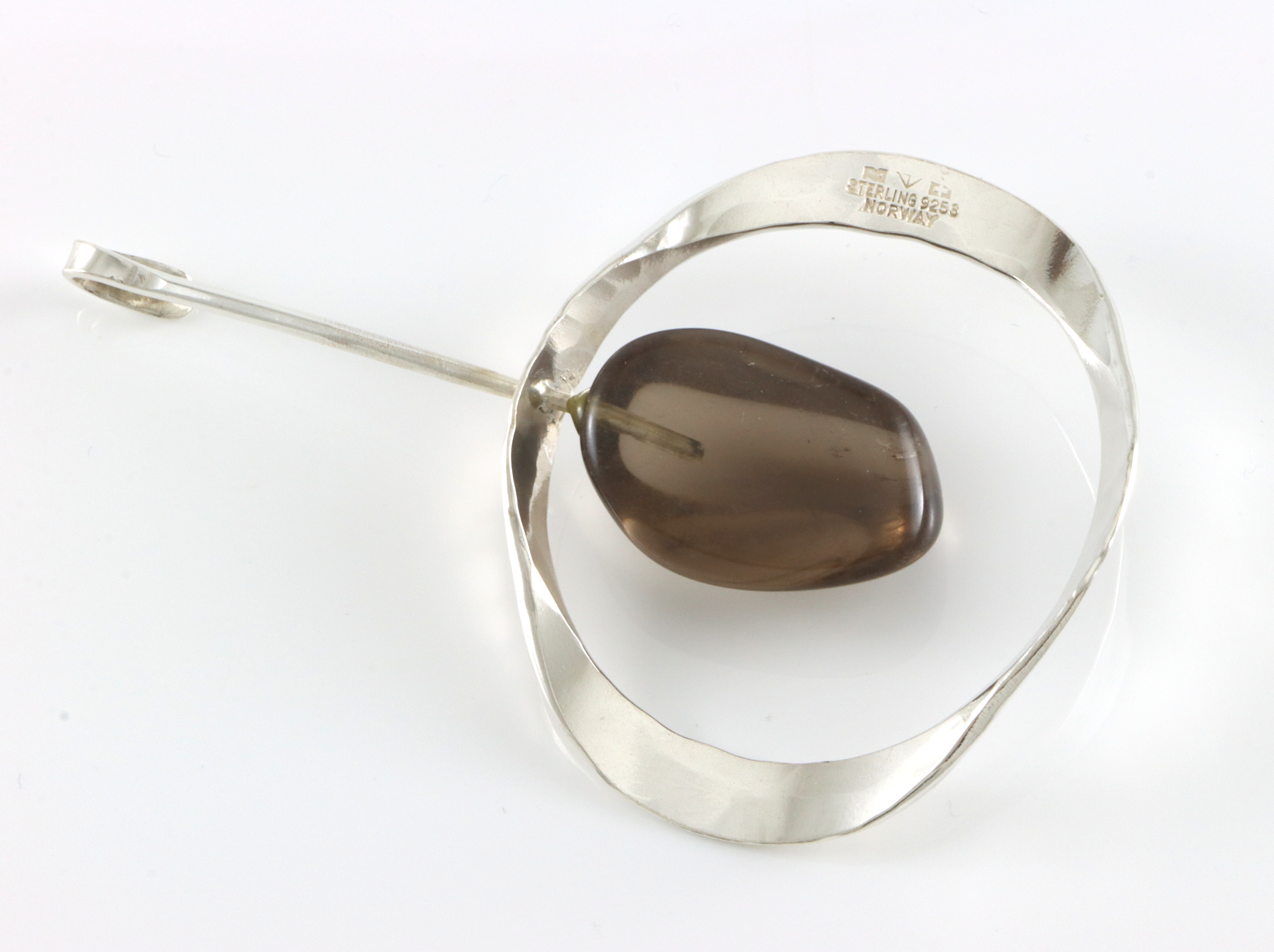Tone Vigeland. Anheng i 925 Sølv med brun stein satt på klave