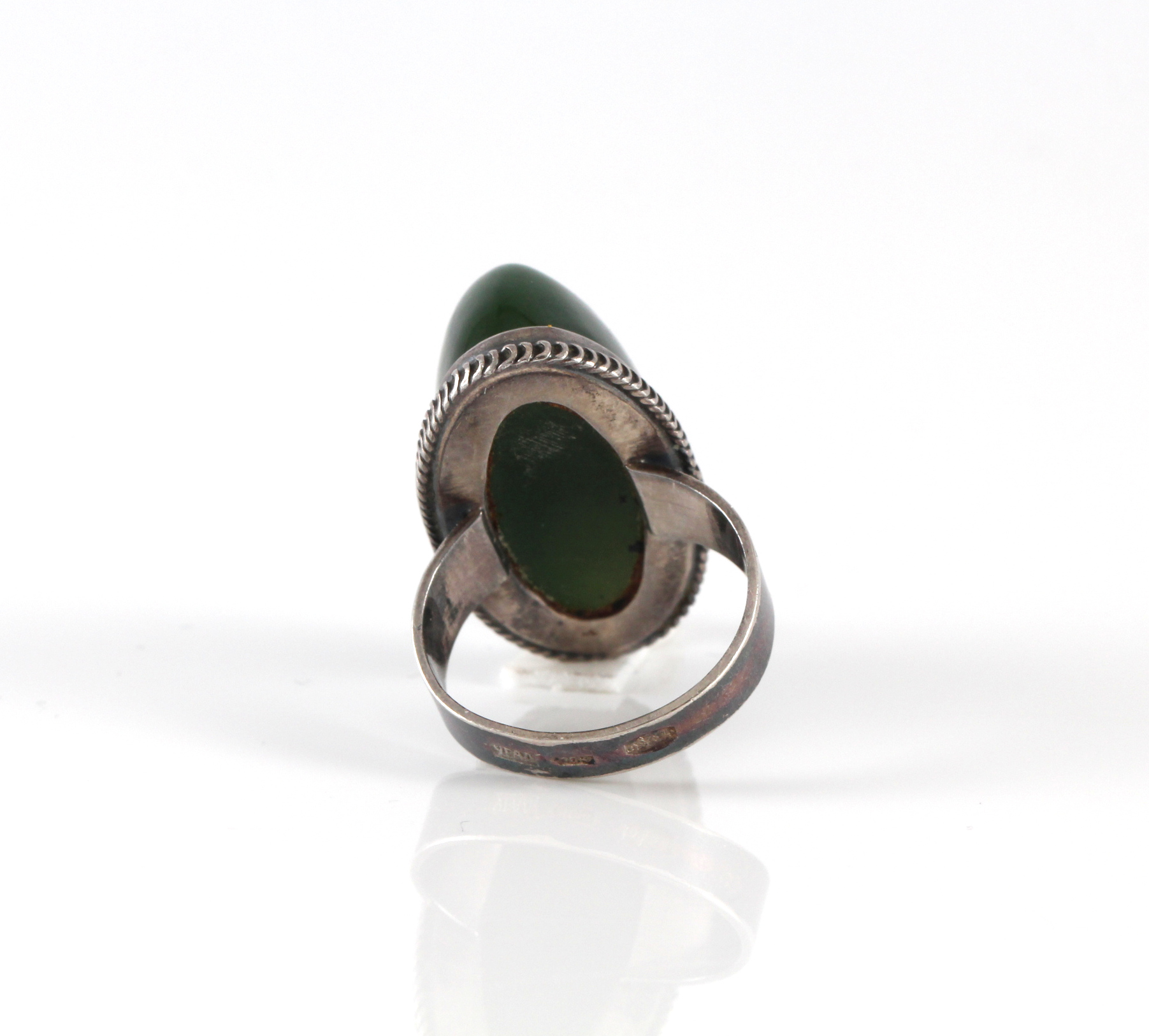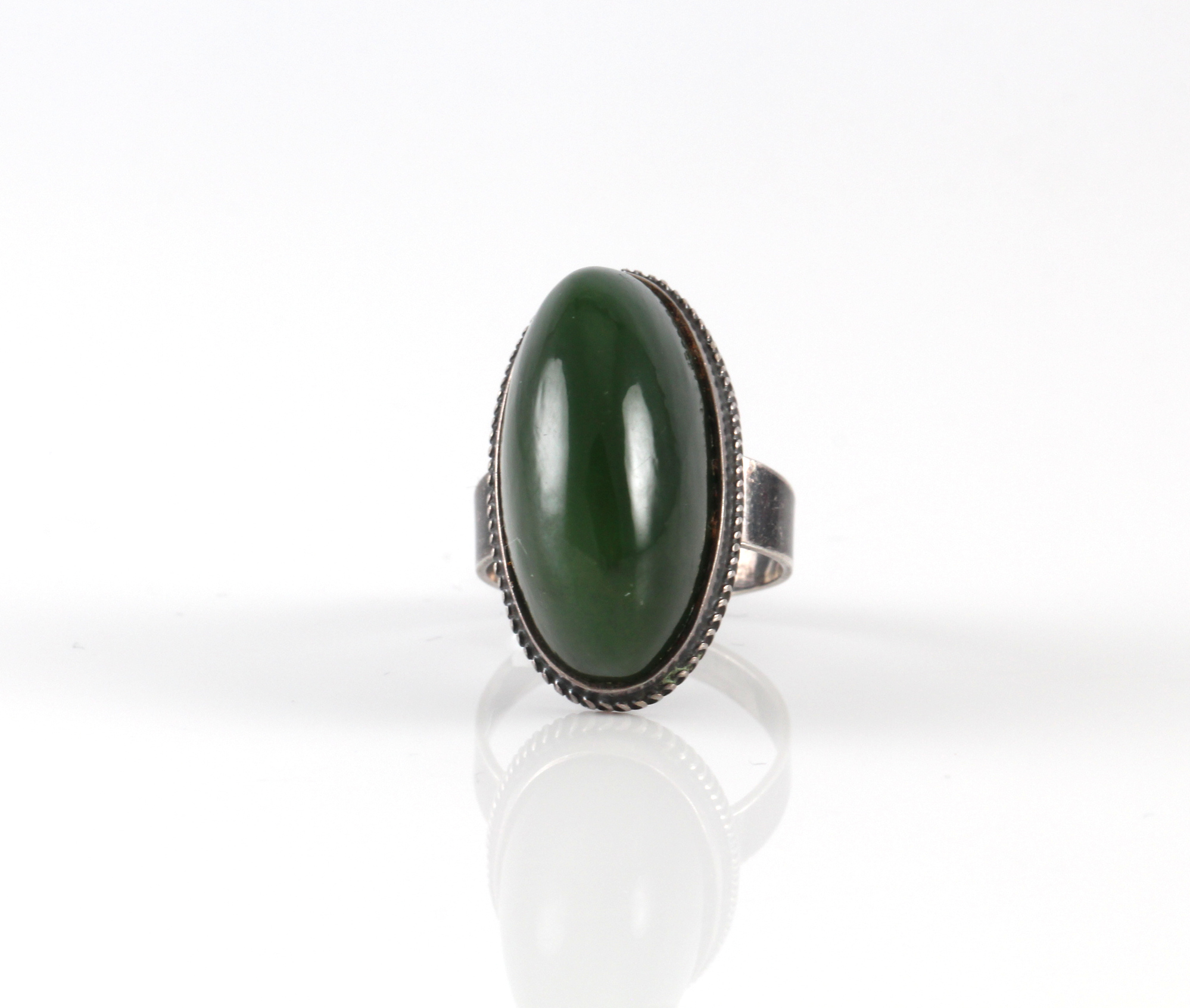 Østeuropeisk ring med høy grønn stein. Ringstørrelse 51,5 Selve steinen er 1,1 cm høy