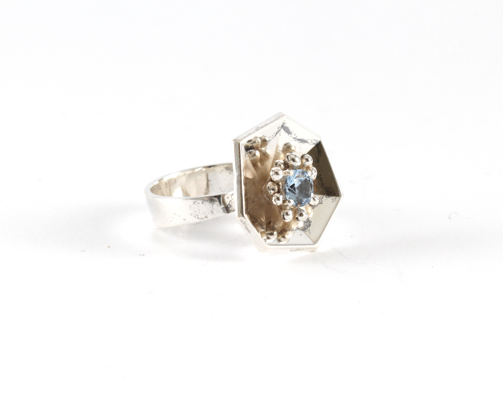Trolig norskprodusert ring med lilla stein. Morsom krone. Ringstørrelse 53,5