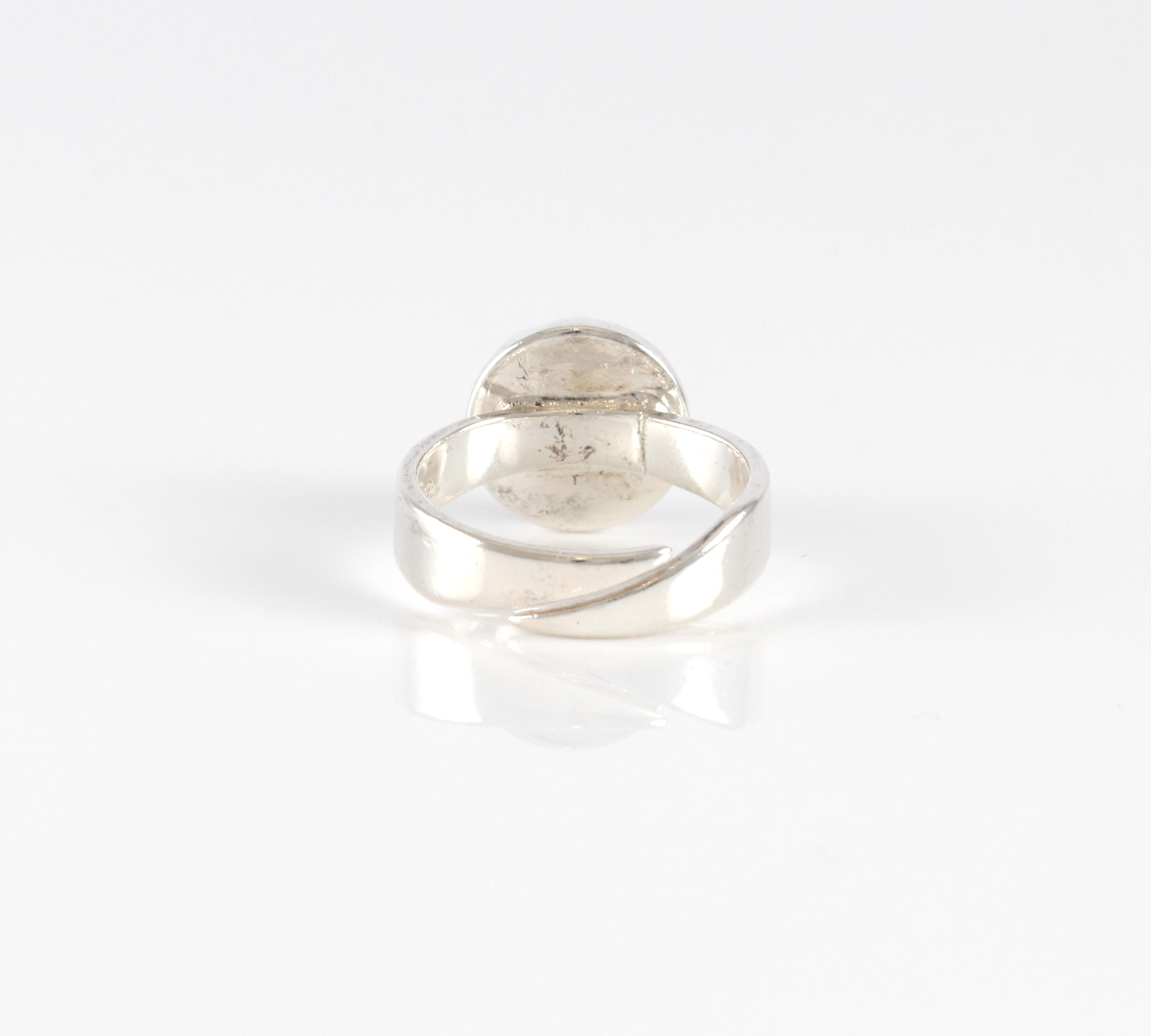 Liten ring fra Danske FROM, steinen er tigerøye. Ringstørrelse 51, men skinnen er utvidbar.