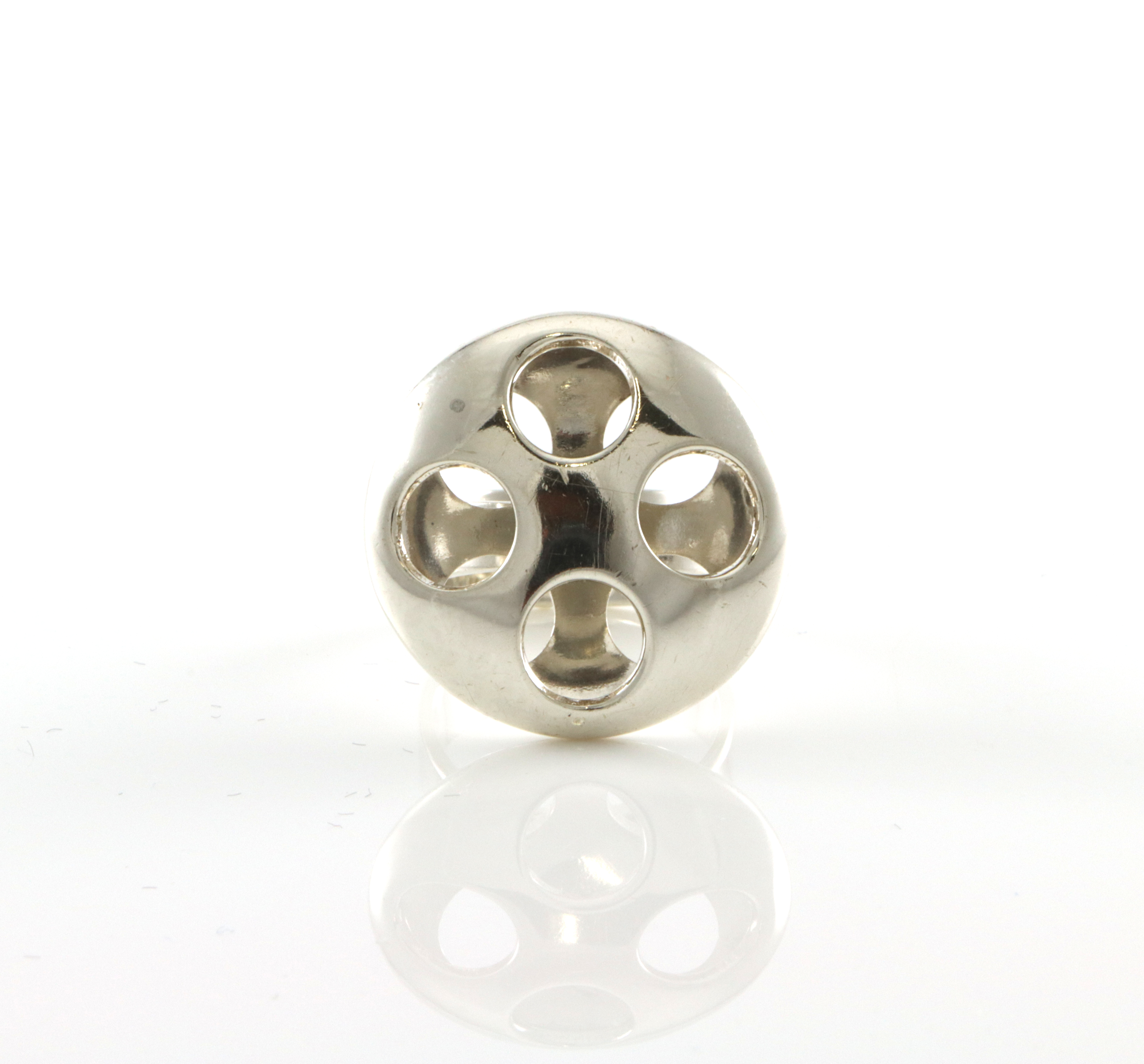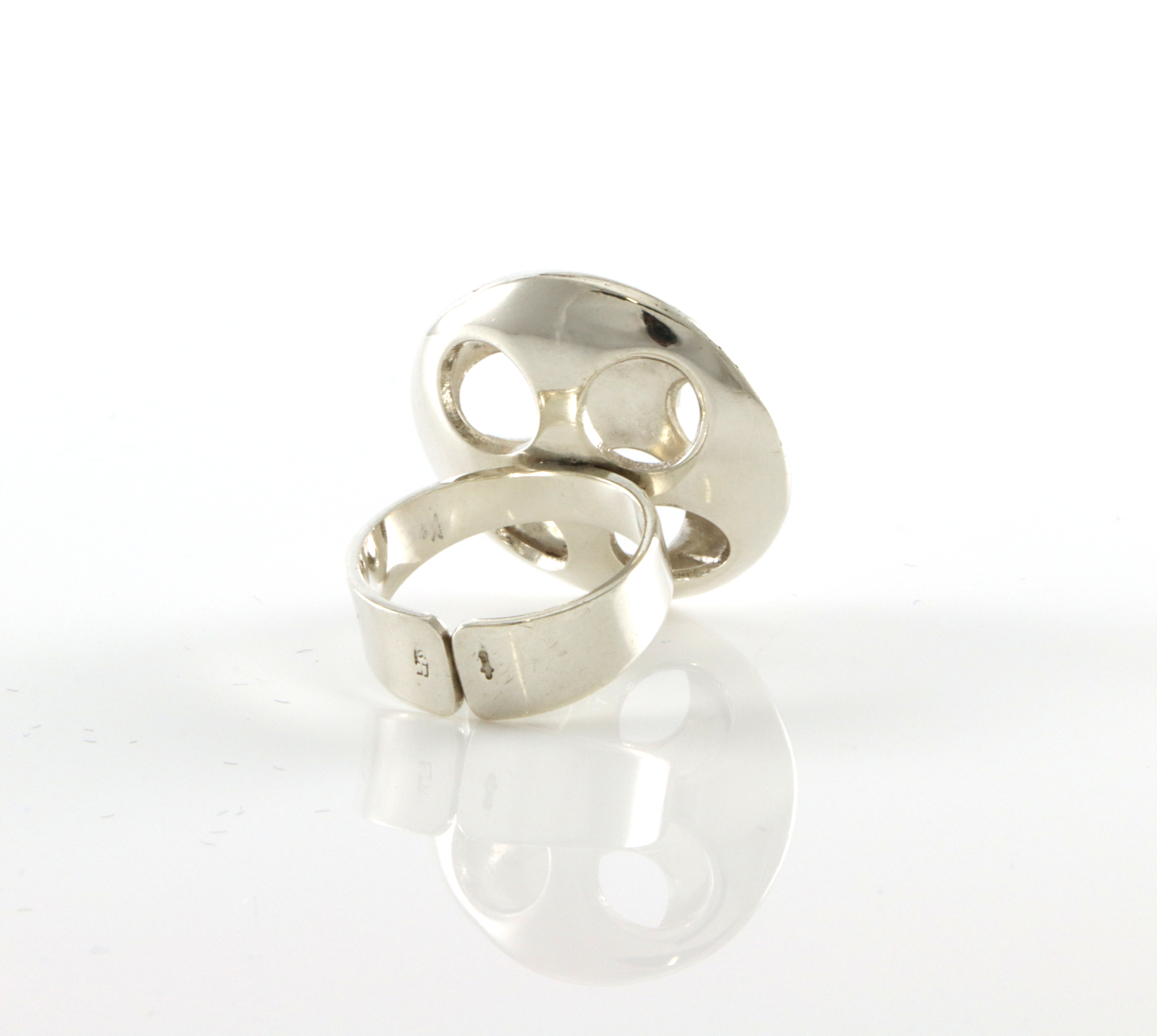 Kul modernistisk ring med stempler som er for utydelige Diameter krone: 23 mm Ringstr: 53 (justerbar)